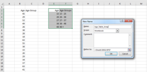2. Using formula tab, name the range of cells E2 to F7 as Age_Table_Array.