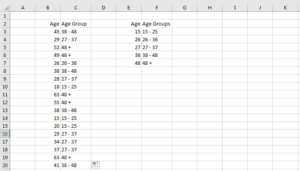 4. Hit Enter key on your keyboard and fill age group using the fill handle. You should get same result as below.