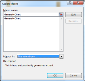 9. Right-click on the shape and select assign Macro. A list of all recorded macros will appear. In this case, select GenerateChart and click OK.